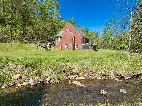 Incredible opportunity to own a truly unique property. The chapel of this church is something to behold. The beautiful woodwork & beams complement the high ceilings. Downstairs you'll find a kitchen, a meeting room that could be converted to a bedroom, an open common space, and screened porch. This beautiful property boasts a flat yard and is bordered by a creek. Lots of parking! You are a short drive to the Toe River. Don't miss this one, it's really something special. Sold as is.