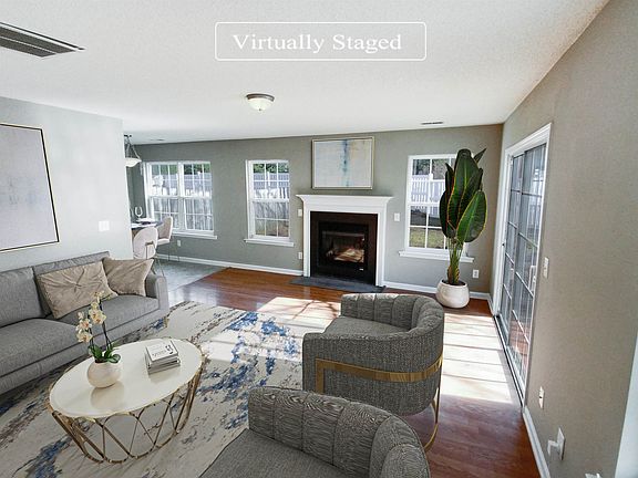 Charming 3BR/2.5BA home now available! Recently renovated in January 2023 with new interior lighting plus refinished cabinets and vanities. Enjoy preparing meals in this impressive kitchen equipped with ample cabinets and generous counter space. Flow into the living room featuring a cozy fireplace, perfect for entertaining. The main bedroom boasts a private ensuite and walk-in closet. Other bedrooms offer plush carpet, and sizable closets. Relax with your favorite drink in the fenced in backyard with a patio, lush grass, and great opportunity for adding personal touches. Don't miss this incredible opportunity. This home has been virtually staged to illustrate its potential.