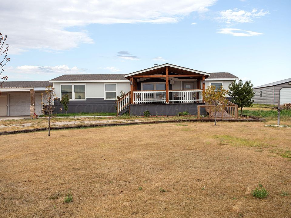 This beautiful manufactured house sits on 2.5 acres. Inviting front landscaping, and an open floor plan. The kitchen with eatin bar and gas range with separate dining area features fabulous flooring that extends throughout the home. Large living area with fireplace and beautiful flooring extending throughout the house. Isolated primary suite with large walkin closet.The property also includes a 4 CAR GARAGE can accommodate 4 cars, along with a spacious carport. Also has a MANCAVE or WORKSHOP with a bathroom. This home offers both luxury and practicality, making it an ideal choice for those seeking ample space and outside city living.