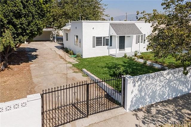 This WONDERFUL GATED PACOIMA FAMILY HOME w/ PERMITTED DETACHED GARAGE CONVERSION has just undergone a BEAUTIFUL DESIGNER REMODEL, is located in a desirable neighborhood on an EXPANSIVE 8100 SQFT. FLAT LOT & PRICED FOR AN IMMEDIATE SALE!! Boasting a bright & open floor plan, it's alluring features include: BRAND NEW designer wood laminate flooring throughout, a spacious Frml. Living Rm bursting w. natural light.... opening to the BRAND NEW Chefs' Kitchen w/ sleek stainless steel appliances, custom quartz-stone counter-tops & shaker-style wood cabinetry. There's also 2 "Family Sized" Bedrooms w/ BRAND NEW designer plush carpeting, NEW ceiling fans & walk-in closets... & a sizable "PERMITTED DETACHED GARAGE CONVERSION" (Approx. 400 sqft.) which includes a 1/2 Bath, fresh paint that's absolutely perfect to utilize as a Studio, Gym, Home Office or possible ADU (Accessory Dwelling Unit). Extras include: BRAND NEW interior & exterior paint, smoothly finished ceilings & BRAND NEW designer hardware/fixtures. The LG. PRIVATE BACKYARD features lots of concrete patio area for entertaining guest & family & a Lg. Covered Patio Structure/Car Port. HURRY... This REMODELED GEM IS WAITING FOR YOU!!!