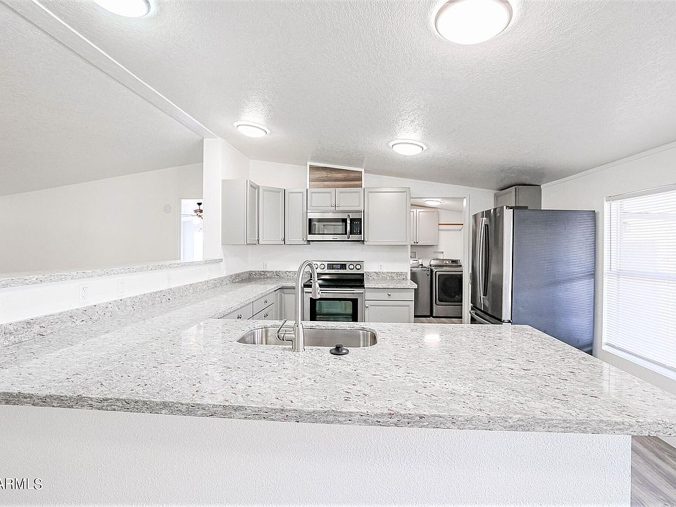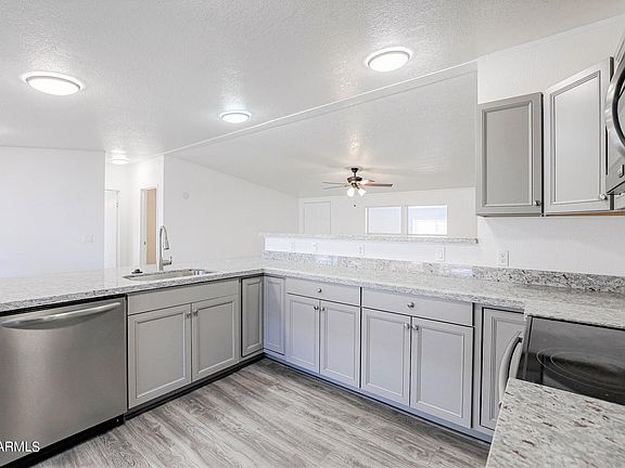 This stunning remodeled home is truly a secret gem tucked away in Peoria. Featuring a spacious, open and airy split floor plan with gorgeous sprawling granite counters and stainless steel appliances. Each bedroom has its own walk-in closet. Beautiful bathroom vanities and brand new plank flooring throughout PLUS a huge BONUS room and a HUGE storage room. This home also has a newer roof, and comes with a washer and dryer set. Don't miss this home!