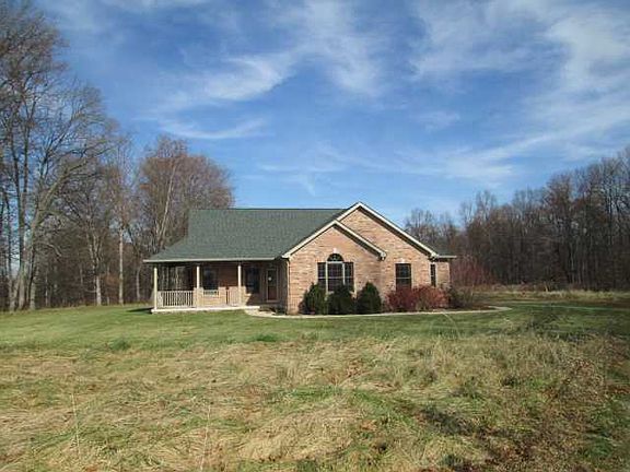 THIS GREAT ALL BRICK RANCH STYLE HOME FEATURES HARDWOOD FLOORS THRU OUT, MASTER SUITE WITH DUAL VANITIES AND WALK IN CLOSET, ADDITIONAL BEDROOM AND FULL BATH, AND OPEN FLOOR CONCEPT WITH VAULTED CEILINGS, LIVING ROOM/DINING ROOM COMBO AND A KITCHEN. HOME IS LOCATED ON 5.2 ACRES WITH A COVERED FRONT PORCH, STORAGE SHED, AND A THREE CAR ATTACHED GARAGE.