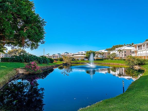 Wake up to long water views, the calming sound of a beautiful pond fountain and the sight of manatee frolicking in the deep water harbor right outside this lovely 2/2/2 on SW Florida's peaceful west coast. This condo has it all in a gated, Five-Star community. Just steps away, down the front or rear stairs are your private ferry to the Gulf of Mexico beach, 3 heated pools, 3 clubhouses, tennis, pickle ball, planned activities and more. Take the path from your back door which follows the water and leads to the Club with its workout room, cocktail and football parties, classes, water aerobics, yoga and card games. Once back home, you'll enjoy the crown molding, Corian counters, graceful built-ins, newer AC and fridge, 2015 water heater, water softener, wine fridge, hurricane-rated sliders plus shutters on rear lanai, dehumidifier in the large storage room and a large master bedroom closet. A front nook off the kitchen has lovely pocket doors and shutters which make for a third sleeping area when grandkids or family are in town. At the end of the day, you'll look down the long waterway as the Intracoastal Waterway sky turns pink and say "ahhh." This unit is offered turnkey furnished with a sleeper loveseat in the front nook and has great rental potential. Call for your showing today.