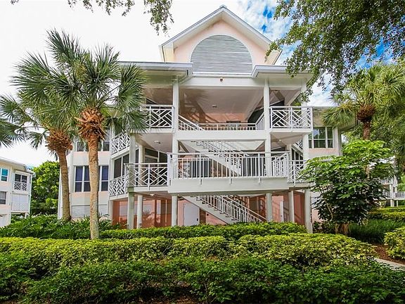 Enjoy the best of everything... with views overlooking a lake with fountain, tropical landscaping, a marina and the Intracoastal Waterway. This luxurious residence features just under 3000 square feet of air conditioned living space along with a spacious lanai and 2 car tandem garage with additional storage room. Kitchen has been updated with beautiful wood raised panel cabinetry, granite, stainless appliances and a tray ceiling with pendant lighting. Front guest bath shower has been updated with newer tile and new glass door along with a newer vanity with granite. Living & dining areas offer wood flooring. Second level offers another guest suite, full bath, loft and alcove area which makes for a perfect office or reading area. This residence is being sold turnkey furnished and is located within a couple miles of Boca Grande. Enjoy the abundant amenities such as pickle ball, tennis, his & her saunas, outdoor spa, 3 clubhouses & pools and private ferry access to Little Gasparilla Island & its pristine, tranquil beaches.