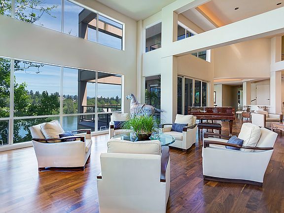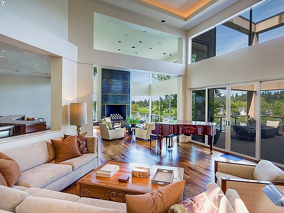 Stunning riverfront contemporary. Jaw dropping water views from all rooms. soaring ceilings, walls of windows and skylights designed to maximize natural light and maximize views of downtown and MT Hood. Substantial renovation left no detail to chance. Home has been featured in design publications. State of the art fully automated home with amazing finishes. 5,000 bottle climate controlled wine cellar, gym, elevator, full floor master retreat with custom closets. Extremely rare boat dock on Willamette River.