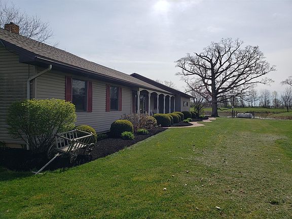 ABSOLUTELY STUNNING SETTING. This lovely ranch home offers over 13 acres including large pond, woods and stream through the property. Formal entry opens to formal living room with large bow window highlighting views of the countryside. Formal dining room off the living room great for entertaining. Large kitchen with island and breakfast bar open to eating area and family room. Family room features built-ins and fireplace. One end of home features large owner suite with access to the heated sunroom, 2 additional bedrooms with guest bath. 4th bedroom is located on opposite side of home with full bath. Laundry/mudroom combination off 2 car garage. Full unfinished basement. Sunroom is heated to enjoy the views of nature and pond year-round. Stunning from every angle of the home.