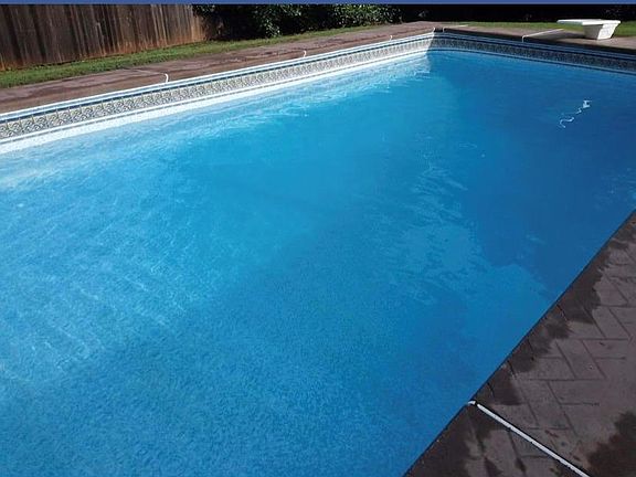Beautiful home with an in-ground gunite pool that has a 3yr old vinyl liner, diving board, removable stairs, and a pool cover. Backyard also has a deck, patio, pool house, and a gate that open to the neighborhood greenbelt. New carpet just installed in all bedrooms. Main living areas have wood look vinyl plank flooring. New vinyl flooring will be installed in the laundry room. Formal living at the front of the home. Second living has a brick fireplace and a built in bookcase. Office has a built in desk and bookcases and is located just off of the formal dining. The kitchen has a breakfast bar, a smooth surface cooktop, a self cleaning convection oven, and an eating space with double bay windows. The oversized laundry room has plenty of space for your washer, dryer, second fridge, and a mud bench. Master has a full bath with a jetted tub/shower combo, double vanities, and double walk in closets. Both secondary bedrooms have walk in closets with one having access to the jack-n-jill bath.