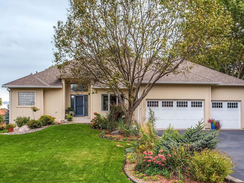 Spacious Soft Contemporary Beautiful custom-designed one story with large windows, open floorplan and unique features throughout. Enter into bright and welcoming living spaces including a formal dining room, great room with high ceilings, a cook’s kitchen with cabinets galore, dinette and sun room. Enjoy the main-level master suite with a large bathroom including a separate tub & shower, and separate generous walk-in closet lined with built-in shelving. The lookout lower level features an open family room/game room with an updated wet bar, two additional bedrooms, a full bath and plentiful storage. Certainly don’t miss the custom-built climate-controlled wine cellar! Other home highlights include an attached 3-car garage, 3-season porch with gas fireplace and additional gas fireplaces in the great room and family room. Wonderful corner lot with mature trees, lush gardens and a private patio oasis await you. Truly a masterpiece in landscape design. Buy with confidence … 1-year Home Warranty offered by Sellers!