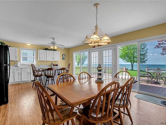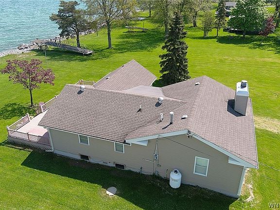 Introducing 11001 Lartz Lane, boasting 1,536 square feet on nearly 2 acres with almost 200 feet of pristine Lake Ontario Frontage. Fully furnished ranch-style cottage with an open floor plan. Large eat-in kitchen and main bedroom with vaulted ceilings, walk-in closet, and lake views leading out to the expansive back deck. Living room with wood-burning fireplace. A massive second bedroom can fit multiple beds. Forced air central heat and on-demand hot water heater. 4+ car detached garage with electric. Double lot includes seperate building lot and frontage to Lakeshore for direct access to your new lakehouse getaway. 48-foot dock can be included in the sale. Showings start immediately.