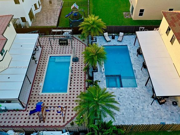 Beautiful 4 bedrooms, 2.5 bath with a converted garage into a 1 bedroom apt with a full bath, porcelain floors on 1st and laminated on 2nd floor, renovated kitchen and bath with stainless steel appliances, alarm, camara throughout the house, enjoy the grand patio with a built in barbecue, cooking area, bar and a salt system pool surround by a beautiful landscaping, great for family and friends gathering. Motorized aluminum fence driveway. no HOA. It is a must see it to fall in love with this property.