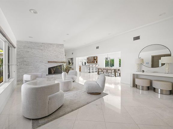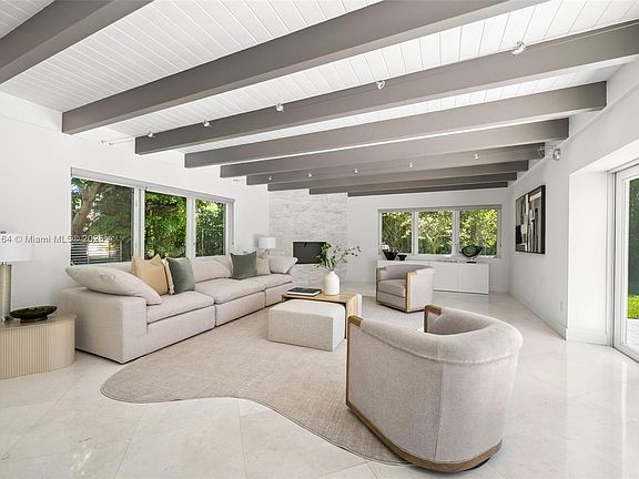 Positioned on a 34,000 SF corner lot in North Pinecrest, 11001 SW 64th Ave is a one-story 4,600 SF single-family home with 5 beds and 4 baths, currently configured as a 4-bed. The home features ceilings up to 10.5 ft, impact windows/doors, gated entry, and a covered driveway. Defining features include a renovated kitchen with high-end appliances, two distinct dining areas, a massive great room and family room with a brick fireplace, renovated baths, a large playroom, laundry, and a two-car garage. The backyard is turnkey with a heated pool, summer kitchen, dining area, and generous outdoor living space. Upgrades include an ENERGY STAR-rated cool roof for reduced cooling bills, a 10.8 KW solar array with the option to double capacity, and a 120-gal on-demand solar hot water system.
