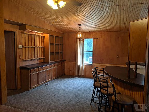 Manufactured home that has had some updating started and is waiting for your finishing touches. Lots of natural woods used from wainscoting and ceiling in the living, dining and kitchen. Open floor plan. Dining room area has a hutch and built-in storage. Kitchen has an eating bar with stools. (Stove, refrigerator, dishwasher to remain.) Pantry. Master bedroom at one end with a full bathroom and cedar lined walk-in closet. 2 additional bedrooms at the other end with large closets. Large guest bathroom. Laundry room (washer/dryer remain). Additional room off the back that can be a great family room, inside workshop, craft space or office. Detached 2 car garage has electric. The front yard fenced in with a patio plus garden pond and landscaping potential. Back deck has been started but is not finished. (hot tub remains).
