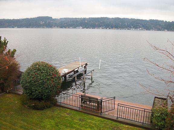 Enjoy this exquisite lakefront home including your own 60 feet of private waterfront, dock and boat lift. Offered furnished or unfurnished. Constructed in 2009, all 3 levels boast high end finishes throughout and expansive windows overlooking Lake Washington and stunning views of Mt. Rainier. Spacious and light filled 4 bedrooms plus office, 3.5 baths, formal dining and living areas, gorgeous upscale gourmet kitchen, two fireplaces, large family room, utility room with full size washer/dryer and laundry shoots from every floor. House offers A/C and tons of storage. The main floor has a sliding glass wall that opens to connect the inside living to the covered outdoor dining space. The large covered deck on the lakeside of the home has built-in lighting and barbecue overlooking the lake which is perfect for entertaining! Downstairs opens to a grassy yard to the water and hot tub. Single car garage with additional parking off street for up to 4 cars. Steps to Burke Gilman Trail. Centrally located, Matthews Beach neighborhood lies 2 miles northeast of University of Washington and about 8 miles northeast of downtown Seattle. You don't want to miss this one! No Smokers. Tenant screening and credit check required. $39 per person application fee. Portable screening reports not accepted.