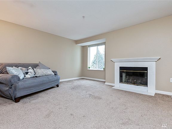 3 bed/2 full baths! Walk to stores & restaurants & watch the sunset from large/private/covered balcony. Easy access- 2nd floor w/ NO stairs to front door & carport directly in front of unit. Large living room w/ cozy fireplace. Complex is FHA approved, has nicely landscaped grounds, & well maintained. HOA dues include water, sewer, garbage, basic cable, fitness center, club house w/conference room, hot tub & game room. Close to transit, I-405 & SR-167. Don't miss storage closet on balcony!