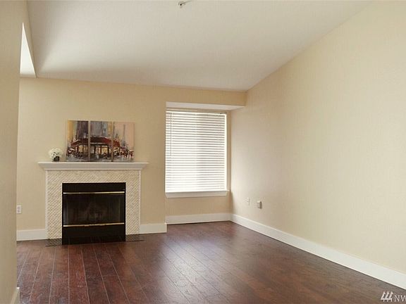 Light-filled top floor condo just renovated and ready for you! Easy access to 167 and 405. One block from restaurants/shopping. Upgraded hard surface flooring and fresh paint and trim throughout. Living room features vaulted ceiling and a wood-burning fire place. Master has walk-in closet. Large deck overlooks green space with storage unit attached. Designated covered parking spot. Full size W/D. Amenities include cabana with gym and spa. HOA dues even cover basic cable! Come see your new home!