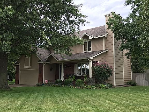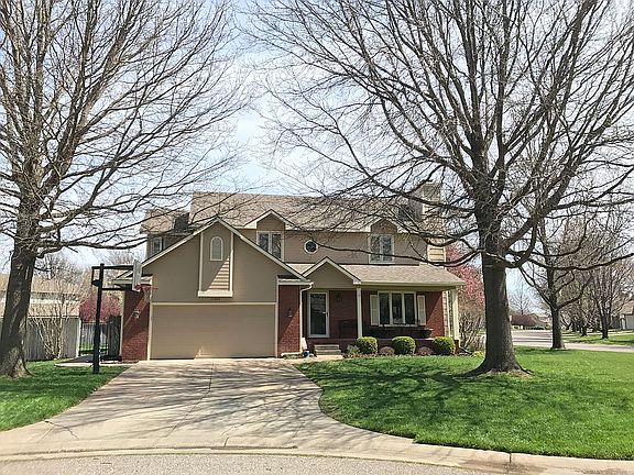 **UPDATED 4 BEDROOM TWO STORY HOME, FAMILY FRIENDLY, QUIET NEIGHBORHOOD!** Updated 4 bedroom, 3 ½ bath home - set back in a quiet location within Huntington Place. Huge corner lot on a cul-de-sac. Main floor features beautiful updated solid 3/4" oak flooring and updated granite countertops. New stainless steel appliances in kitchen. Main floor laundry area. Large living room with wood burning fireplace w/ gas start. Large dining room with updated lighting. All Bathrooms have been updated and include new ceramic/ travertine tile flooring and new granite countertops. Upstairs features 3 bedrooms, including spacious master bedroom with vaulted ceiling and walk-in closet. Basement has beautiful brick and stone fireplace, built-in shelving, bar area, storage area, and 4th bedroom and bathroom. Garage has built in workbench and cabinets, painted floor, and access to lots of attic storage with ladder. All new upgraded, double pane/ argon gas windows and siding have been replaced within the last 8 years. Backyard has large wood deck, shed, family garden, large rubber mulched play space, and privacy fence. Established yard with many beautiful trees and flowerbeds, irrigated with a sprinkler system on well. House backs up to a spacious three lake common area with great walking paths. Call us at (620) 217-1318 or email at lkroulhac@gmail.com today to set up your private showing.