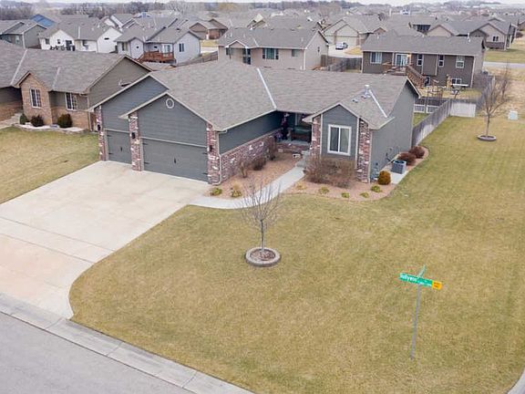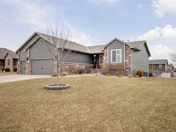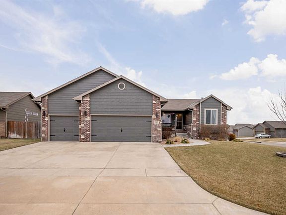 BEST ON THE BLOCK! You will adore this immaculate 5 bedroom, 3 bathroom home located in the Goddard School District! Walk in and you will appreciate the open concept on the main floor including a fireplace, vaulted ceiling and neutral colors. The kitchen improvements might be your favorite feature including tiled flooring, granite countertops, matching kitchen appliances which remain with the home and pantry for additional storage space! The laundry room is located on the main level - WAHOO! This split bedroom floor plan features a master bedroom oasis and includes an on-suite bathroom and walk in closet. Recent master bathroom finishes include tiled flooring, granite countertops, modernized sinks, fixtures and backsplash. There are two additional bedrooms and an updated bathroom also located on the main level. Can you say, GARAGE GOALS! Enjoy the three car, insulated garage and doors, LED lighting, built-in speakers and overhead shelving for storage. The recent basement finish includes beautifully stained concrete flooring, view out windows, two bedrooms, one full bathroom, storage closets and Manabloc system located in the mechanical area. IMPROVEMENTS GALORE: ALL Cabinets and Drawers are soft close. Recent Basement Finish. Exterior updates include 2019 paint, lighting fixtures, privacy fenced yard, sprinkler system on irrigation well, beautiful landscaping, freshly stained deck with updated bannister, upgraded back sliding glass door, concrete patio and storage shed. Don't forget this home is located in the Goddard School District within a cul-de-sac and conveniently located to K-42. You will LOVE becoming the newest neighbor on the block when you make Hollywood Ct. your new home!