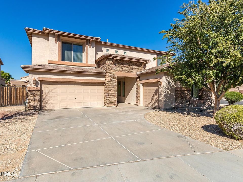 Prepare to be amazed! Come & see this luxurious 5 bed, 3.5 bath residence now on the market! Located on a premium corner lot & featuring a beautiful facade w/stone accents, easy-care front landscape, 3 car garage, & RV gate! Inside you will find large dining & living areas w/tile flooring, neutral palette throughout & upgraded metal banister. The fabulous kitchen offers plenty of cabinetry & counter space, a pantry, recessed lighting, & an island w/breakfast bar. Large loft w/endless possibilities! The primary bedroom features a walk-in closet w/mirror doors & ensuite w/dual sinks. Bed & bath on main level. The expansive backyard includes a cov'd patio, grass area, built-in BBQ, & fire pit, everything you need for a summer cookout w/friends & loved ones! Hurry and schedule a showing today.