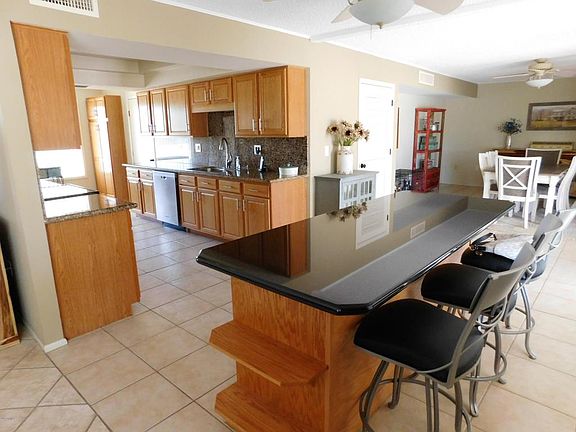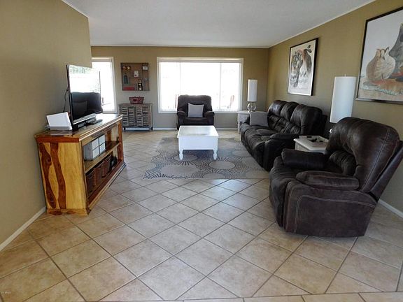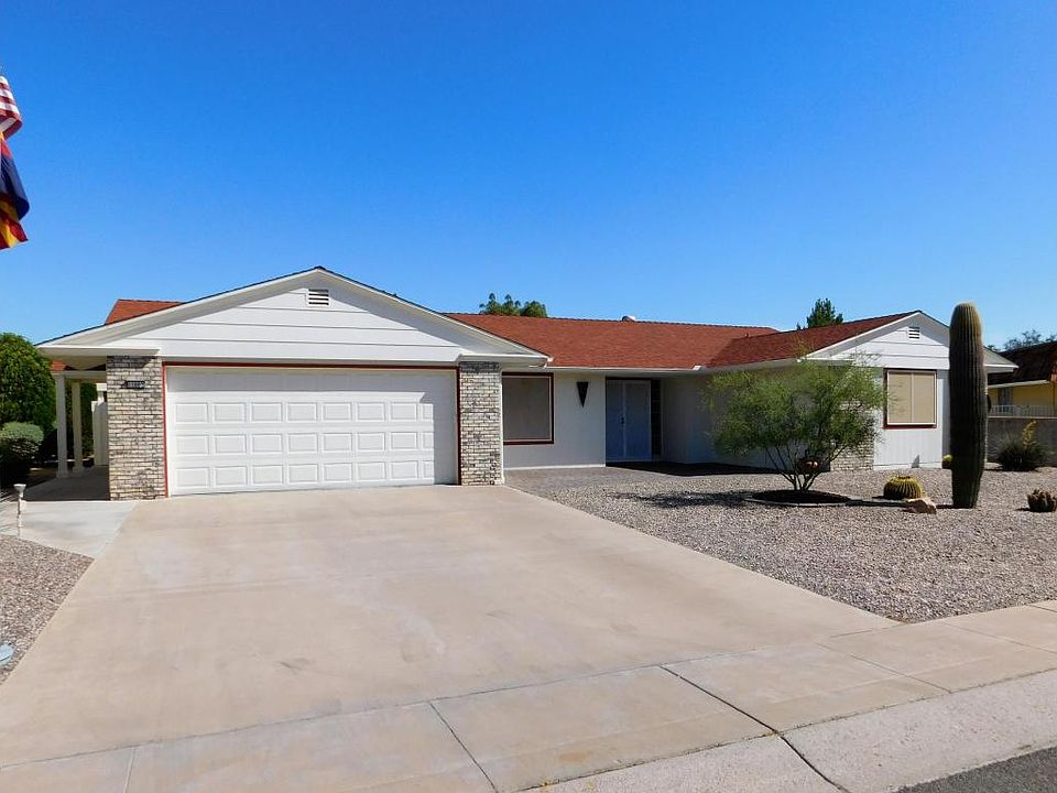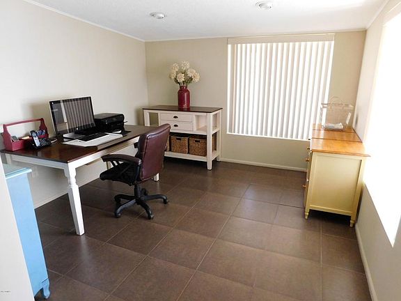 Attractive & well cared for Georgetown model has welcoming curb appeal & then some! A lovely paved courtyard leads you to dual security doors, which welcome you into this 2 bedroom home with office & Arizona room too! Large neutral tiles throughout the house, as well as blinds & ceiling fans to keep things cool. Kitchen is absolutely stunning with granite backsplash & countertops, large island, stainless steel appliances, bottom cabinets with pullouts & extra service door to garage. Large laundry room has racks, shelves & water heater. Master suite has recessed lights, block window, a walk-in closet with built in drawers & a door leading outside to the extended covered patio. Patio has lovely tile work & skylights, making it a great spot for relaxation! Don't delay, make this one home!