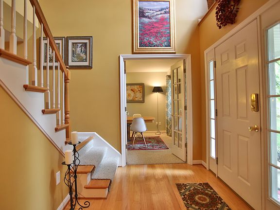 Four bedroom 2.5 bath home with a finished walkout basement on a cul de sac. Terrific lot as it backs up to a wooded creek area. Open floorplan on the first level with hardwood floors in the entry and eat in kitchen area. Family room with lots of windows and a brick fireplace. Master bedroom has 2 walk in closets. Finished walkout basement is open and great for entertaining. Covered deck area with lots of privacy. Two car garage. Home warranty provided by seller. Home appraised 2 years ago for $255,000.