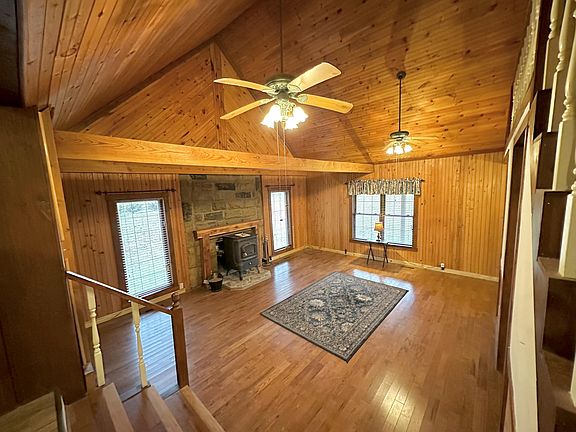 Wow, priced $30,000 UNDER a recent appraisal value! Offering your very own 9 acre mini-farm that features a one-of-a-kind log cabin, amazing barn, pasture with pond, and so much more. The cabin boasts around 1,900sqft of finished living area. The kitchen features plenty of cabinet and countertop space, a nice dining area, and an unbelievably cozy living room that offers a vaulted ceiling, a stone fireplace with a pellet stove, and hardwood flooring.The home also includes 3 bedrooms, 2.5 baths, large laundry room that can also serve as an office space, and a 775sqft basement! The property is on city water but also offers a well (new pump & air tank), propane generator hookup, and 4 efficient wall heaters for supplemental use.