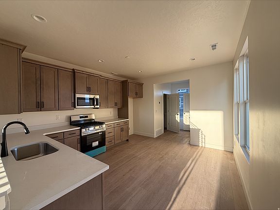 Now Selling The Manhattan-Sky End Unit in Downtown Daybreak! Be Part of the Excitement in the New Downtown Daybreak Community, only a Short Walk from the Bee's Ballpark. This Stylish 3-Bedroom, 2.5-Bath Home with a Flex-Room is Designed with 9-Foot Ceilings on Every Floor and Open Railing for a Bright, Elevated Feel. The Highlight is the Private Sky-deck, Offering Beautiful Views of Downtown Daybreak - the Perfect Spot to Relax, Entertain, and Take in the Energy of the Community. Home is Complete.
