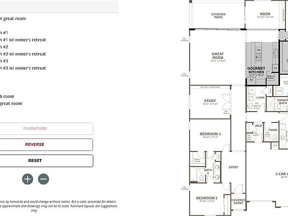 Part of the Modern Living™ Collection, the Darius provides a sophisticated and accommodating ranch-style layout. In addition to a lavish owner's suite—with attached bath with Oversized walk-in shower—this home includes a second owner's suite with an adjacent living room, perfect for multi-generational living Plus 2 additional bedrooms with Jack and Jill bathroom, A powder room, a 3-car garage, a study, a great room with an adjacent covered patio featuring a multi-slide rear door and an inviting gourmet kitchen with a generous island, built-in pantry, dining nook upgraded white cabinets and white quartz counters, Beautiful wood laminate flooring throughout paired with stone flooring in the bathrooms and carpeted bedrooms.