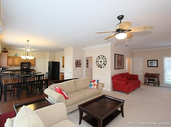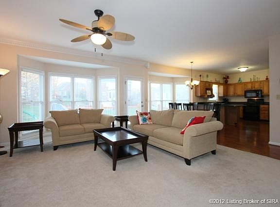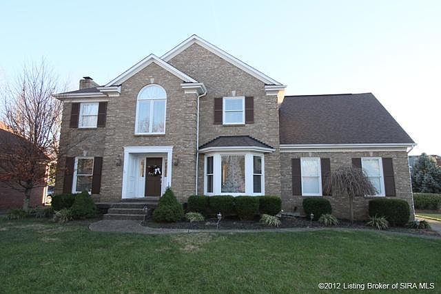 THE ONE YOU HAVE BEEN WAITING FOR! Hurry before you miss this 4BR/3.5BA home with approx 3700+SF of living space. Unique features on the main floor for a two story home are TALL ceilings w/an OPEN FLOOR PLAN and a back wall of windows for lots of natural light. Also included on 1st floor are fireplace, hardwood flooring, formal dining room, dental crown, half bath, updated kitchen appliances/trash compactor, planning desk and pantry. Impressive and spacious 2nd floor master suite features vaulted ceiling, built-ins, bathroom I can play baseball in w/whirlpool tub plus ceramic tile shower, his/hers vanities and BIG walk-in closet plus add'l unfinished storage space. Per previous owner basement finished in 2007 complete w/surround sound in BIG family/entertainment room, potential BR 5 or fitness room, very nice full bath w/granite flooring and lots of closet space. Add'l info from previous owner new roof 2006, new HVAC 2010 and new deck/new paver patio. Home warranty included.\n\nInformation Deemed Reliable But Not Guaranteed. Information provided by the Southern Indiana REALTORS® Association, Inc. © 2010 SIRA Multiple Listing Service. All rights reserved. Brokered And Advertised By: RE/MAX FIRST Listing Agent: Bart W. Medlock