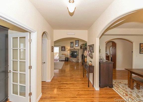 Built in 2007, this home features smart design, luxurious upgrades, and single level living. Hardwood floors abound keep the high traffic areas pristine and tile in all the baths exude quality. The main living spaces feature: vaulted ceilings and archways, dual sided fireplace, large formal dining area, kitchen nook area, and plenty of room to spread out. The kitchen features stainless appliances, gas range, custom cabinetry, and Corian counters. There is a large covered back patio ready for entertaining and sunsets. The master retreat features dual closets, 5 piece bath with jetted tub, walk in shower, and bay window. There are 2 large additional bedrooms along with an office that is a legal bedroom and 2 baths to service them and your family or guests. In addition, the home features air conditioning, new 50 gallon hot water heater, and radon system to keep your family safe. A huge 3 car garage can fit the largest trucks and has smart storage shelving system built in for tools and toys. Regarding the lot, you note that the acreage is fully fenced with split rail and you are greeted home by custom masonry entry gates. As you smell the fresh country air and take in the 360 degree views from Pikes Peak to the prairie???s, you smell nothing but the open plains and hear nothing but the winds and wildlife. At 4.75 acres, there is plenty of room to spread your wings and cultivate what you???d like. With a domestic water permit, zoning for horses, pre-built planting beds, large storage shed, and animal fencing already in place; you are free to start a hobby farmers self-sustaining life, or just enjoy the wide open spaces knowing you can anytime you please.