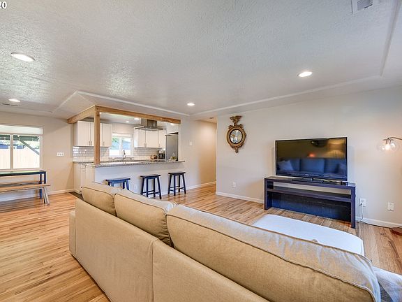 Amazing ranch situation! Own this beautifully updated, mid-century home with new, open-concept kitchen, granite, subway tile, huge island, roof, windows, doors, designer paint, fixtures, refinished oak floors, electrical and HVAC system. You will love the bonus room, two car garage and a spacious backyard, with a covered patio for outdoor entertaining and new cedar fence. This house has everything! Located on a quiet street with amazing neighbors. It's perfect!! [Home Energy Score = 5. HES Report at https://rpt.greenbuildingregistry.com/hes/OR10185636]
