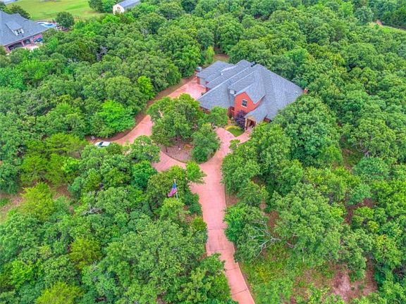 Nestled in the trees, this beautiful, custom home offers the seclusion of an acreage and benefits of a gated, upscale community. This energy efficient home sits on 5.25 acres of natural, low maintenance landscape; including a private walking trail encompassing property. This NE Edmond location offers a convenient commute to Edmond/I-35. A well-maintained, one-owner home that has large rooms, spacious walk-in closets, 3 fireplaces and many efficiency features: 6" outer walls, triple pane windows, 15 SEER dual fuel heat pumps, solar board roof decking. Other custom features include whole house natural gas generator, central vac, circulating hot water, ice maker, double ovens, prep sink, safe from and large woodturning fireplace. Too many features to mention in this home, see list of features in attachments. Make a private appointment to view its style of timeless beauty and numerous unique upgrades.