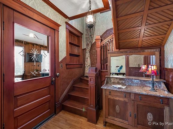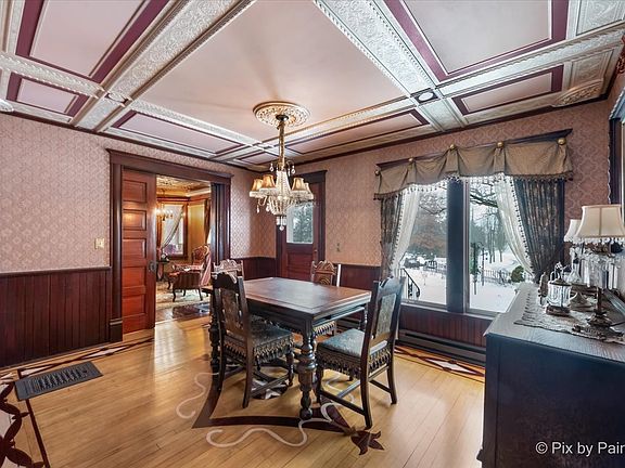 Step into a world of enchantment with this EXTRAORDINARY Victorian haven set on over 10.45 acres of pure bliss! A historic folk victorian two-story gem, this home offers timeless elegance with each room you step into. Soak in the breathtaking views while driving up the meandering CIRCLE Driveway. The concrete pad is the PERFECT place to park & unload groceries. Indulge your inner chef in the gourmet kitchen, where top-of-the-line appliances like the Gaggenau oven and Sub-Zero glass door refrigerator turn every meal into a masterpiece. The custom-built island beckons with a Dacor warming drawer and a granite counter, promising culinary delights in a stylish setting. Not to mention the amazing Butler Pantry, perfect for storage! Entertainment takes center stage in the grand family room with the overhead projector, drop-down movie screen,and black-out curtains. Feel at ease sitting under the happy cloud inspired hand-painted ceiling. Step through the double OAK doors into the parlor and bathe in the natural light. This room is adorned with panel molding, custom hand-painted walls, and drapes. Wander through the enclosed HEATED Sun Room with bamboo flooring and panoramic views of this expansive property. Step back into the foyer and head upstairs where you'll notice the intricate Millwork & Newel Post Details. Every room has a thoughtfully designed masterpiece that speaks volumes about the passion poured into this abode. Even the bathroom countertops hold a piece of history, crafted from preserved Original Barnwood. The upstairs bathroom steals the show with a Kohler heated bubble massage air jet tub, while the downstairs suite boasts a Speed Queen commercial washer and dryer, plus a spacious separate shower room with a heated towel rack. But the magic doesn't stop at the doorstep! Updates abound, including a new Amana forced air furnace, Anderson insulated casement windows, and a Kinetico water softener. Venture into the basement's wine cellar or rest easy knowing a 70kw Honeywell generator stands ready ensuring uninterrupted energy for the entire house, the charming chicken coop, and the spacious machine shed. City-bound transportation at your fingertips, and Lake Geneva just a stone's throw away. This isn't just a home; it's a living work of ART, waiting for you to become a part of its story. Discover a world where details matter, and each room is a celebration of craftsmanship and style. With its captivating beauty, expansive grounds, and endless possibilities, this property is an invitation to a life of creativity, and serenity. Come, experience the magic for yourself!