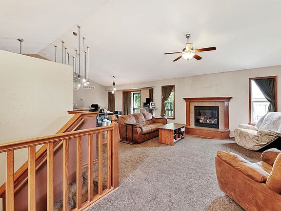 Located in Southern Ridge on a large corner lot entering a cul-de-sac, this home has plenty of potential for you! As you walk in you will notice a large living room with plush carpet and a gas fireplace. This opens up to a dining area and large spacious kitchen with plenty of storage. Off the kitchen you have the master bedroom that overlooks the willow tree in the backyard and does have a large master bathroom with separate sinks, a corner tub with a separate shower, and a large walk in closet with adjustable shelving. From the kitchen you will also find the laundry room which opens to the 3 car garage with additional storage. On the main level you will also find 2 additional bedrooms and a full bathroom. The basement features a very large family room with that is perfect for entertaining or gathering around for a movie. The large projection screen and projector will remain with the home. A full bathroom, bedroom, and craft room/office completes the basement. The basement is designed and has room to frame in an additional bedroom if needed. Outside you will find a large covered deck with plenty of shade. Off the deck there is a set of stairs, or feel free to take the corkscrew slide. Large concrete patio with an area for a fire pit. Large playset and trampoline to remain with the home for additional entertainment. Neighborhood features 2 ponds stocked for fishing, walking paths, playground and basketball court, and a swimming pool! House is priced with the cost of adding flooring to the basement family room in mind. Seller would prefer to sell the home in As Is condition.