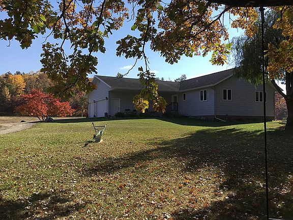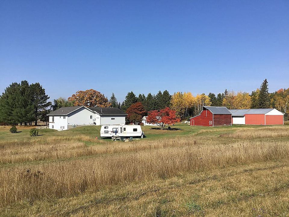 Knotty Pine Vaulted Ceiling / Trimmed With Oak Cabinetry, Windows and Railings / Heated Floors In Basement and Garage / Basement Semi-Finished / This Hobby Farm Sits On 19 Acres / Primitive Cabin Is 380 Square Ft. / Steel Pole Barn Is 80’ x 40’ / Wooden Barn Built In 1931 Has Steel Roof
