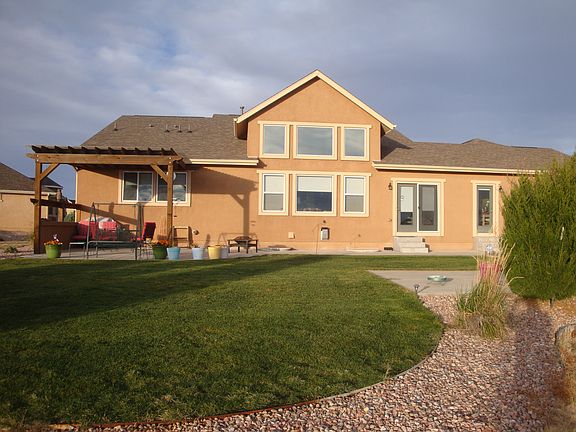 Major Price Reduction! 15 minutes from Peterson AFB! Romance and charm abound in this spacious one of a kind 4BR/4BA/3 CAR with a separate office rancher located on a private .6 Acre lot with Mt. Views & Backs to Open Space. This home exudes quality with gorgeous hickory custom cabinets,gourmet kitchen island,Silestone countertops,custom stone floor to ceiling fireplace,wrought iron railings,luxurious 5 piece master with jetted tub,hardwood floors,french doors,3 car garage, convenient full rear garage door,and an incredible professionally landscaped yard with covered patio. It's truly Better than New