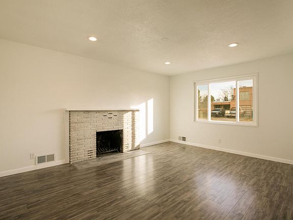 Gorgeous redo on this charming home in the NE Heights. This home features a modern kitchen with white cabinets, granite counters, undermount farm style sink, and stainless steel appliances. You'll love the modern grey tile and high quality pergo flooring throughout most of the home. Both baths have been redone with tiled showers, new vanities, toilets and fixtures. Two spacious living areas both have recessed lighting, and the den features a wood burning fireplace. Other improvements include new electrical service, new furnace, new vinyl windows from Glass Rite, new swamp cooler and the roof was recently replaced with a high quality membrane roof. Large backyard with a beautiful patio with brick pavers and privacy fence. Come and make this your new home today.