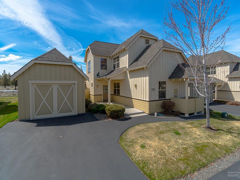 One of the few 2 story homes in Desert Sky with 3 bedrooms that includes a Master Br on main level & 2nd floor Master Br w/fireplace & Cascade Views. Interior features include wood wrapped windows, slate & tile floors, tile & granite counters, Great Room with gas Fireplace & slider door to large patio with privacy walls that backs up to large common area. Kitchen with slate floors, granite counters & gas cooking. Single Car Garage detached with walkway to front door. Home located across street from Lakeside Rec Center. HOA fees for Desert Sky neighborhood covers maintenance of landscaping & irrigation, septic tank, exterior painting every 8 yrs, snow removal & driveway resealing. Owners in Eagle Crest have access to all 3 Rec Centers with pools/pickleball/tennis cts, etc. Eagle Crest Resort has miles of biking/walking trails & 3 golf courses.