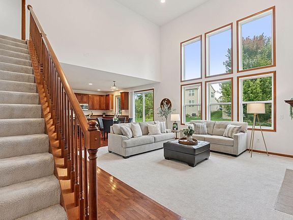 Beautiful Two-Story in Prime Woodbury Location – This 5-bedroom, 4-bath home with a spacious 3-car garage offers over 4,100 finished square feet of comfortable living. Tucked away on a quiet street, this residence blends privacy with convenience. Step inside to soaring vaulted ceilings and abundant natural light. The main level features a versatile office/den, perfect for remote work or study, and the open-concept design flows easily from the living and dining areas into the kitchen—ideal for both everyday living and entertaining. Upstairs, retreat to the private primary en-suite with generous closet space and a spa-like bath, while four additional bedrooms provide plenty of room for family or guests. Set on a .25-acre lot, there’s space to relax and enjoy the outdoors. Recent updates include a new roof (Sept 2022), new furnace (March 2024), security system, and reverse osmosis water filtration system—adding comfort and peace of mind. Located just minutes from shopping, dining, and a short drive to the St. Croix River, you’ll enjoy the best of both convenience and nature.