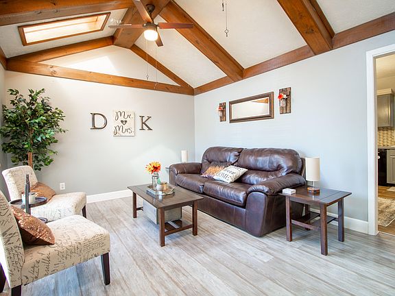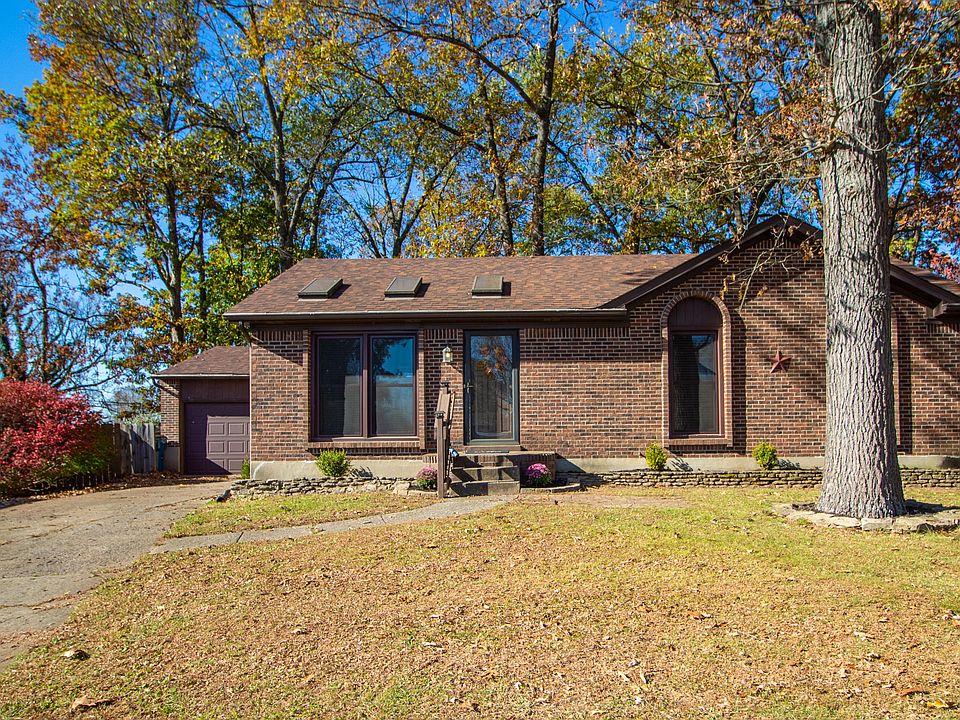Charming & Adorable 3 bed/2.5 bath ranch on private cul-de-sac! Features include a finished basement, neutral paint, updated kitchen & baths, lots of natural light, newer flooring in most rooms, a huge deck, new roof & much more. Enter through the beautiful front door into the living room with 3 skylights, vaulted ceiling with wood beams & lots of character. Eat-in Kitchen has granite countertops, travertine backsplash, stainless steel appliances & a pantry. Spacious primary bedroom has an updated master bath & access to the back deck. Main level also has 2 additional bedrooms & another updated full bath. Basement offers great space for a family hangout or entertainment area & also has 2 bonus rooms that could be used as bedrooms (no egress windows), a half bath & laundry room. Backyard is fully fenced (mostly privacy fence) and has a huge, multi-level deck, a fire pit & lots of privacy. Home also has an attached oversized 2 car garage with lots of storage space and is located on private cul-de-sac. This home is a must see! Schedule your personal showing today