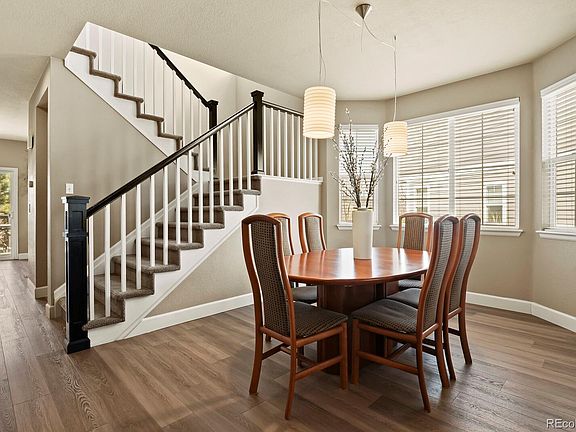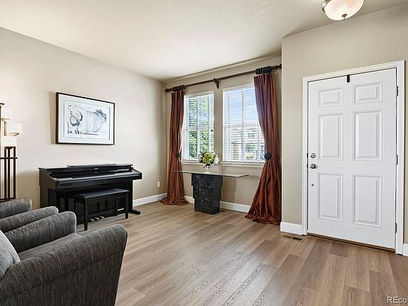 Gorgeous updated home in The Hearth. Over 2700 square feet featuring 3 bedrooms with 3 1/2 baths, plus a finished basement. Awesome open floorplan, no homes behind you and some mountain and city views! New carpet upstairs, granite countertops in the kitchen with stainless steel appliances. Spacious primary suite with bonus sitting area and gas fireplace. Could be a great home office, or just a quiet retreat. Easy care luxury LVP flooring on main floor, perfect for kids or dogs, or both! Large deck and patio with mature landscaping. The exterior of home was just recently painted so nothing to do but unpack and enjoy this great home. Highlands Ranch includes miles of open space, trails and multiple rec centers, tennis and pickleball. This home is a must see, hurry and don't miss out.