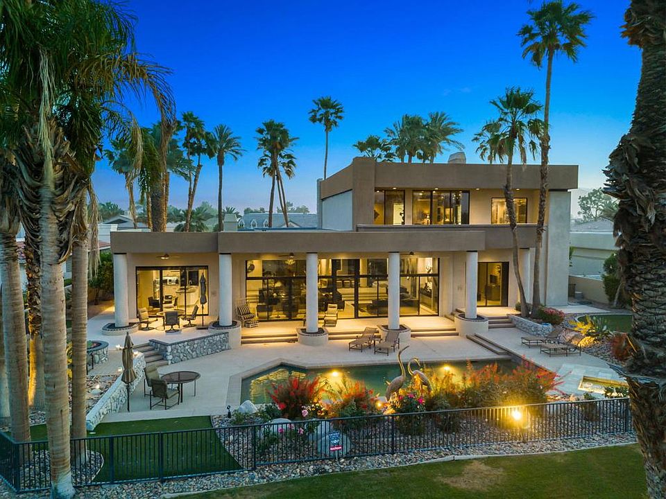 Stunning Custom Contemporary Architecture, Amazing Resort Like Outdoor Spaces and one of the best south facing view lots in all of Mission Hills Country Club. Located in Muirfield Estates, a privately gated street of custom homes. Great Curb Appeal with Circular Drive, Custom Landscaping, Stone Features and Custom Gated Entry. Entry Hall leads to a large entertainer's Great Room with Fireplace, Custom Built-ins, Bar and Dining Room all with Walls of Glass and Stunning South Mountain and Arnold Palmer Course Views. Gourmet Chef's Kitchen with Island, Stainless Top of The Line Appliances, Slab Granite Countertops and Bright White Cabinetry with Stylish Hardware. Morning Room with amazing views to enjoy your coffee. Primary Bedroom Suite is accessed through your private elevator or a dramatic stairway and features Retreat Area with Fireplace and Built-in Entertainment Center, Spa Bath with Granite Finishes, Double Walk -in Closets, Office Area and Lake, Fairway and Mountain Views from a private deck. 3 Guest Suites, each with its own bath and exterior patio provide great room for family and friends or an optional office/den. Outside are multiple terraces surrounding the swimmer's pool and spa, fire pit, covered outdoor living and dining and bbq area. Almost 1/2 acre lot overlooking the lake, fairways, #12 green and mountains. Furniture and art are negotiable, so can be ready to enjoy. A truly special property - Come Home to Your Contemporary Desert Retreat!