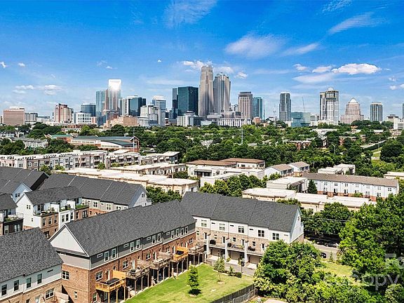 Like new, smart home equipped END unit walkable to Uptown for your work & play needs! Short distance to Noda, Midwood, 277, & Little Sugar Creek Greenway. Lower-level bedroom & en-suite bath serves as a guests' quarters, home gym, or office w/ access to walkout covered patio backing up to plenty of greenspace your pets will love. 2 car garage & driveway for easy parking. Main floor boasts an open floor plan w/ upgraded kitchen appliances & quartz counters. 3rd floor owner's suite w/ huge spa-like primary bath, 3rd bedroom w/ en-suite bath and 2 walk-in closets. 4th floor offers another full bed w/ en-suite bath & show-stopper roof top terrace w/ year-round city skyline views - relax while watching the city light up at night! Spacious floorplan offers extra storage including in the garage & plenty of closets. End unit brings even more natural light. Enjoy surround-sound while entertaining among many upgrades including, oak tread stairs and metal open balusters. Taking backup offers