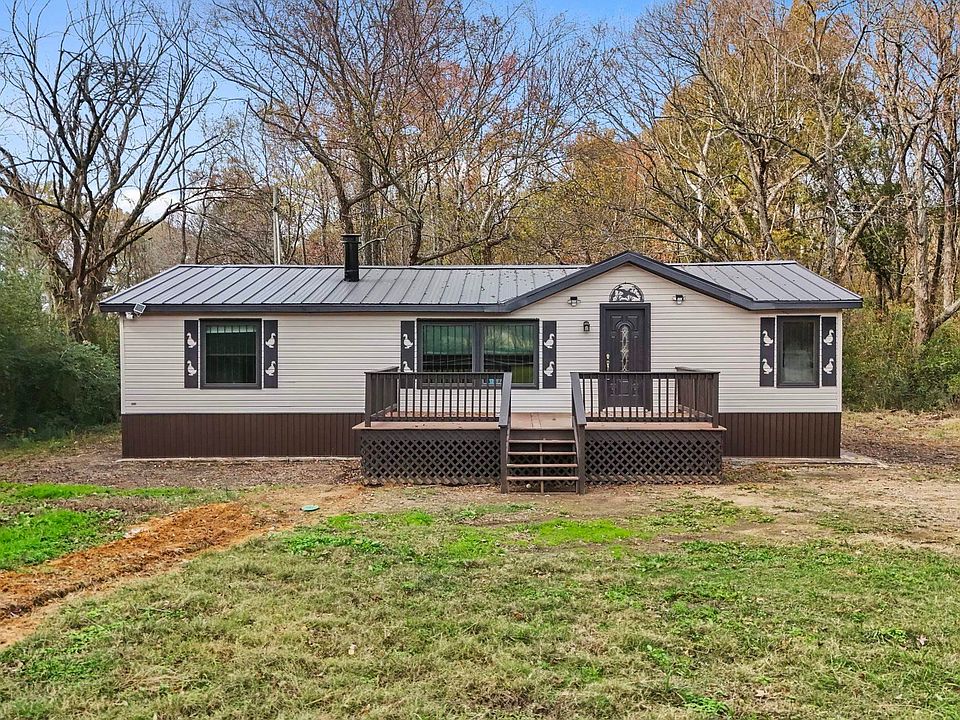 Escape to your own private retreat with the charming 3-bedroom, 2-bath manufactured home on 4.74 acres. The spacious family room, complete with a cozy fireplace, opens to a kitchen featuring new appliances and abundant storage. The primary suite boasts a walk-in closet, dual sinks, and a walk-in shower. Additional storage is available in the laundry room. Enjoy the outdoors on newly built decks at the front and back. Complemented by a new septic system, a wood fence and a gated entry. The wooded acreage offers seclusion and endless possibilities for your lifestyle.