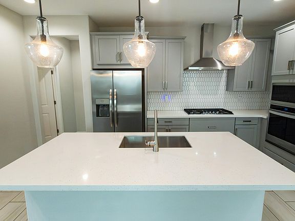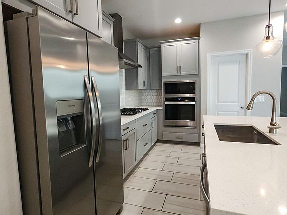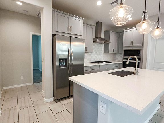 This stunning 2022 build has 3 bedrooms + a versatile den w/ French doors. Open floor plan, kitchen w/ quartz counters, gas range, full hood, large stainless basin sink, walk-in pantry & island w/ breakfast bar. Brand new fridge, washer & dryer included. Durable wood-look tile in main areas. Large master w/ a walk-in closet, dual-sink bath & full-sized shower.