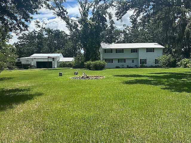 3/3 in main house with detached 4 car garage with office in back. Also separate 1 bedroom apt perfect for m-i-l apt or rental. Main home has oversized rooms and all bedrooms have walk-in closets. Upstairs has been completely remodeled. Master has deck overlooking 10X20 inground pool with Lanai. NO HOA and NO water bill. Property is completely fenced on 2.14 acres. Room to spread out. All reasonable offers considered.