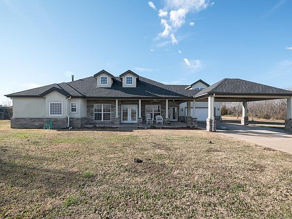 Move in Ready! Custom one owner on 5.63 acs. Master & 1 BRdn, formal dng, office, 2 lvg areas plus Sun Rm. 3 fireplaces (one out doors), Security System, storm shelter, 5 burner gas cooktop, 30x40 shop w/2 overhead doors. New Roof 7/2017