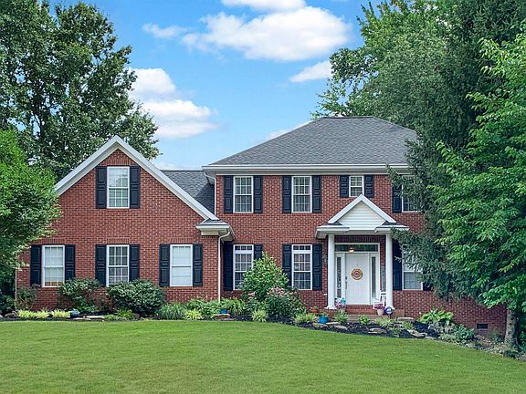 Don't miss this beautiful 4 bedroom 2 and 1/2 bath all brick colonial in Eagle Crossing! Sitting at the edge of the former Eagle Valley Golf Course, in a park-like setting, and within walking distance of McCutchanville Elementary School, this property enjoys gorgeous views of rolling hills from the back patio, lush green woods with a small stream running through them, custom landscaping and easy access to paved trails that can be used for walking, running, biking or golf carts. Entry through the front door leads to a tiled foyer, with beautiful crown molding and a nice-sized office with custom desk to be included in the sale. Behind the office is the kitchen, appointed with stainless steel appliances (included in the sale), a kitchen island, and walk-in pantry. Off the kitchen, is the breakfast room, and the great room with gas fireplace and vaulted ceiling. The first floor master suite includes a walk-in closet and private deck. The master bathroom offers a double-sink vanity, walk-in shower and whirlpool tub. The main floor laundry and half bath round out the first floor. The second floor features three additional bedrooms, a full bath with double-sink vanity and tub/shower combo. An additional large living space is also located on the second floor and can be used as a bonus room, family room or game room. A large walk-up attic offers tons of storage, and the opportunity to finish even more space to increase the homes square footage and living area. Per seller recent updates include new furnace and A/C in 2020, new LVT on main floor in 2020, and all new blinds in 2020.