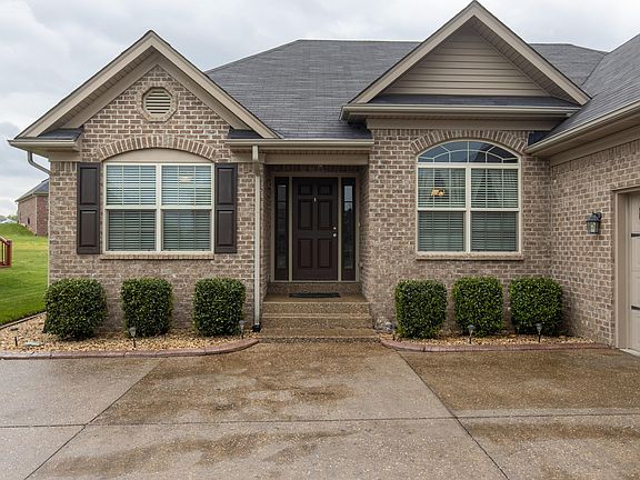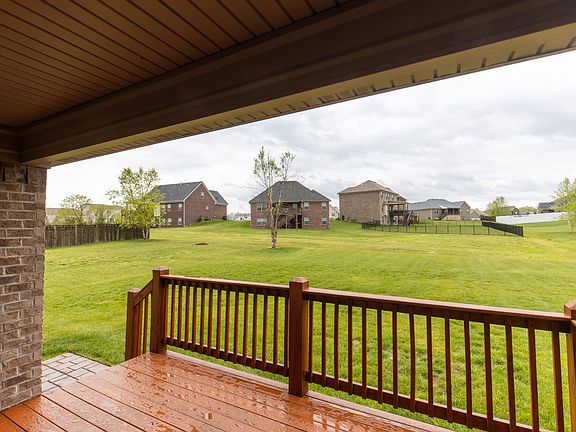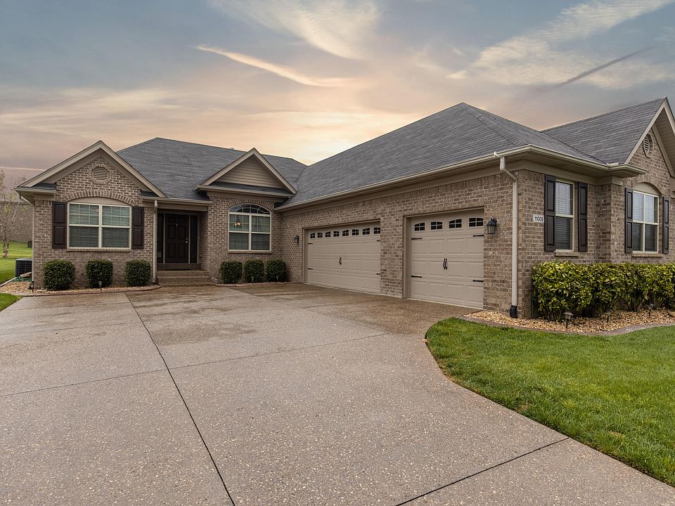 Built in 2012, this one owner ranch style, meticulously maintained, all brick home in Bardstown Woods is move in ready with a beautifully finished basement. Pull into your 3 car garage with fresh landscaping, curbing displaying the front of the home and yard that includes a sprinkler system. Walk in and find new carpet throughout the upstairs and a split floor plan layout great for any buyer. The formal dining room has hardwood look flooring and tall ceilings. The living room is centered around the fireplace and has an open concept into the eat in kitchen. Granite counter-tops and tile back-splash/floors make the kitchen modern and big with plenty of counter and cabinet space(with pantry) and offers a direct sight line into the living room and back yard. Off the eat in kitchen, you can walk out to the partially covered deck and look out into a great back yard that is flat and spacious. Moving back into the house on the garage side you will find a plentiful master bedroom suite that features tray ceilings, dual vanity cabinet, jetted tub, walk in shower, and walk in master closet. No reason to go downstairs to do the laundry as it is located right off the garage with plenty of room and an extra storage closet. On the other side of the split floor plan you can see two more ample bedrooms and another full bathroom. Head downstairs to the finished basement that has been handcrafted to fit any buyer's desire. With built-ins, wrapped support columns, a custom made bar/kitchenette, and a gorgeously finished half bath, this basement will be a special place to host and has all the extra living space you'll need. With this much basement finished, there is still a ton of storage space as you can see in pictures.