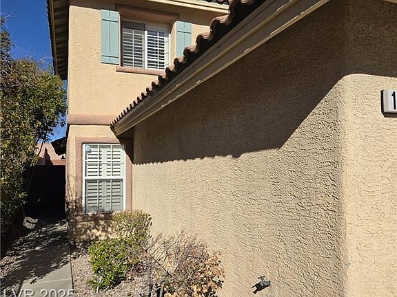 Summerlin Area, gated community. 2 Story featuring 3 bedrooms, 2.5 bathrooms, 2 car garage. Master bedroom located downstairs, with dual sinks, separated tub shower, and a nice size walk in closet. Tile flooring downstairs, and laminated wood flooring upstairs. Plantation shutters. Huge and private yard with no back neighbor with pavers patio.