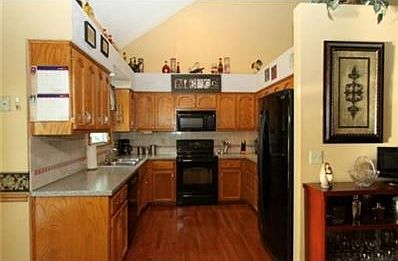 Move In Ready! Great Location in Staley High School Area. Main Level w/beautiful hardwood floors and vaulted ceiling. Spacious bedrooms w/ walk-in closets, updated M Bath and lg. linen closet in hall. Pantry in Kit/Dining area walks out to lg deck, fenced backyd and ex storageshed. Finished basement with lots of storage walks out to a covered patio.